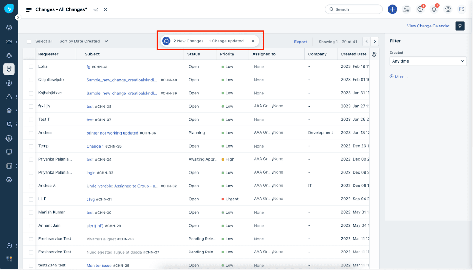 Categoría: Gestión de Servicios de TI.Los usuarios ahora pueden exportar con facilidad los datos de los tickets desde Freshservice con los filtros adecuados para analizar y utilizar de manera eficiente la información de los tickets.